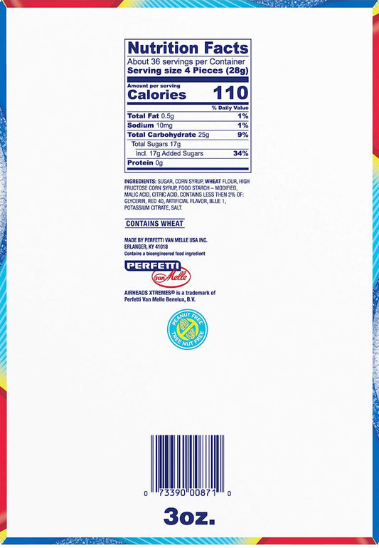 Airheads Candy, Xtremes Belts, Bluest Raspberry (12 Pack)