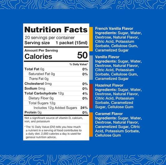 Syrup Sweetener Variety Packets for Hot and Cold Drinks | Vanilla, Caramel, French Vanilla & Hazelnut