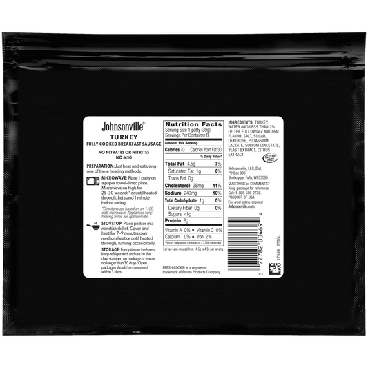 Fully Cooked Turkey Breakfast Sausage Patties Twin Pack
